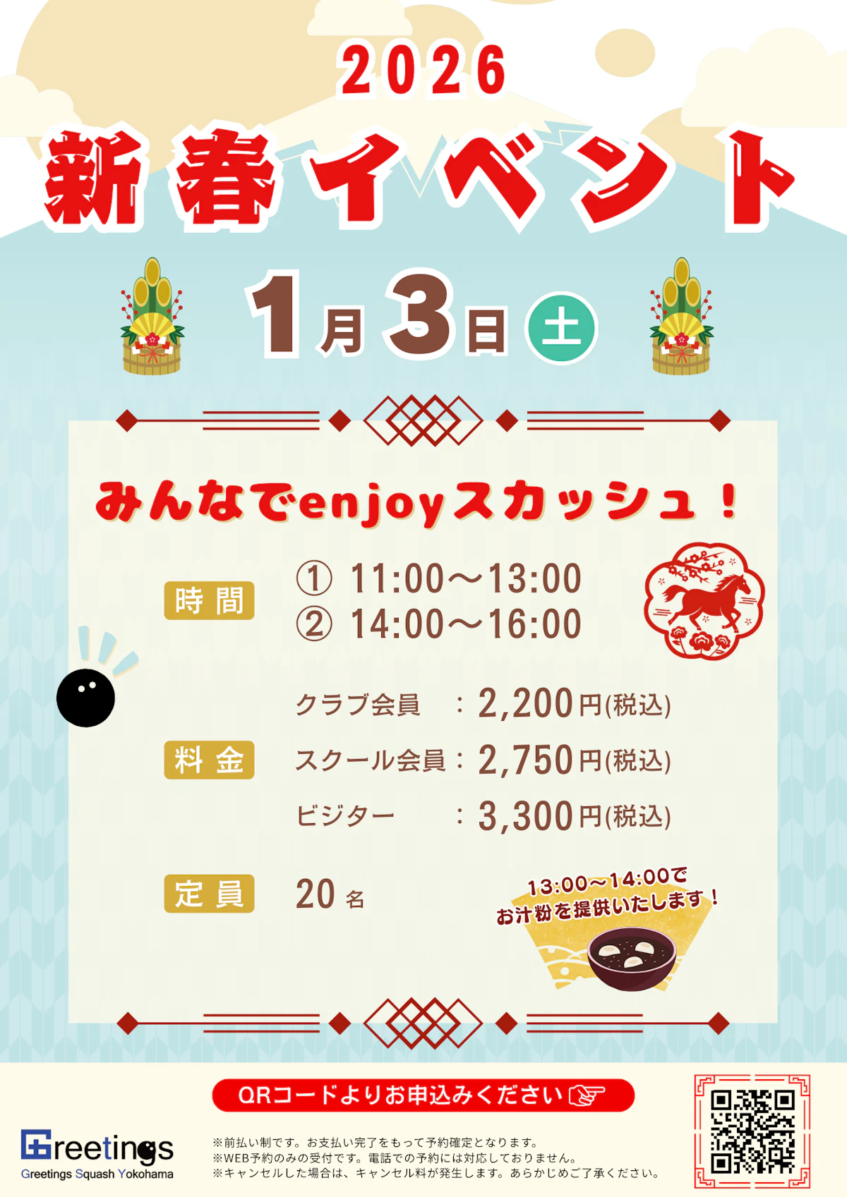 2026年1月3日(土)に、年始を元気にスタートする「みんなでenjoyスカッシュ!」イベントを開催いたします。