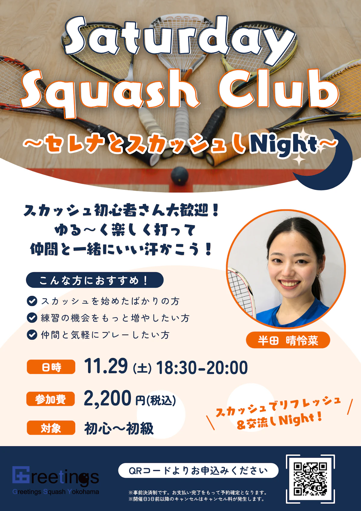 11/29(土) Saturday Squash Club~セレナとスカッシュしNight~