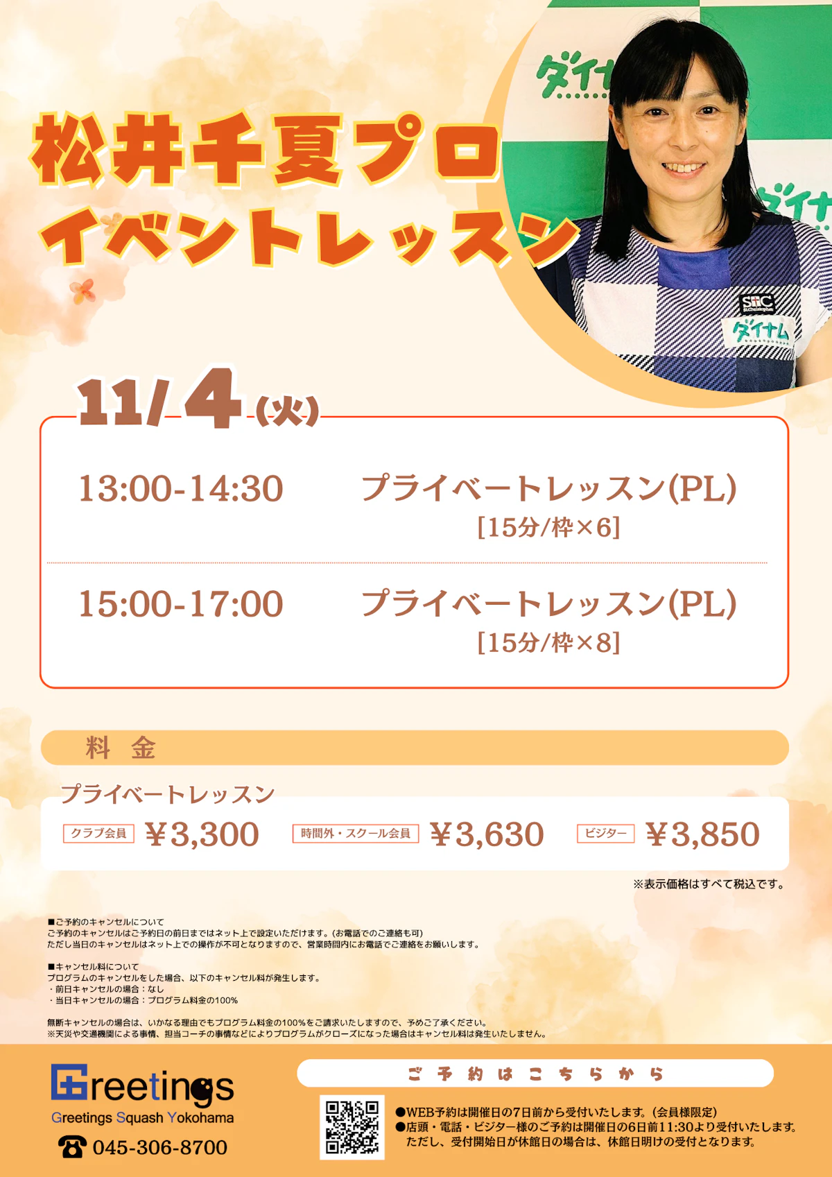 11/4(火)松井千夏プロのプライベートレッスン実施!